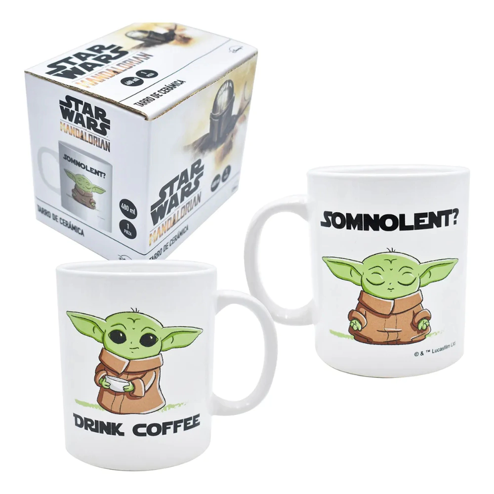 Disfruta de tu bebida favorita con esta taza inspirada en Star Wars: The Mandalorian. Con un diseño de Baby Yoda, es ideal para los seguidores de la saga. Tiene una capacidad de 473 mililitros, con 11.2 cm de altura y 9 cm de diámetro en la boca de la taza.